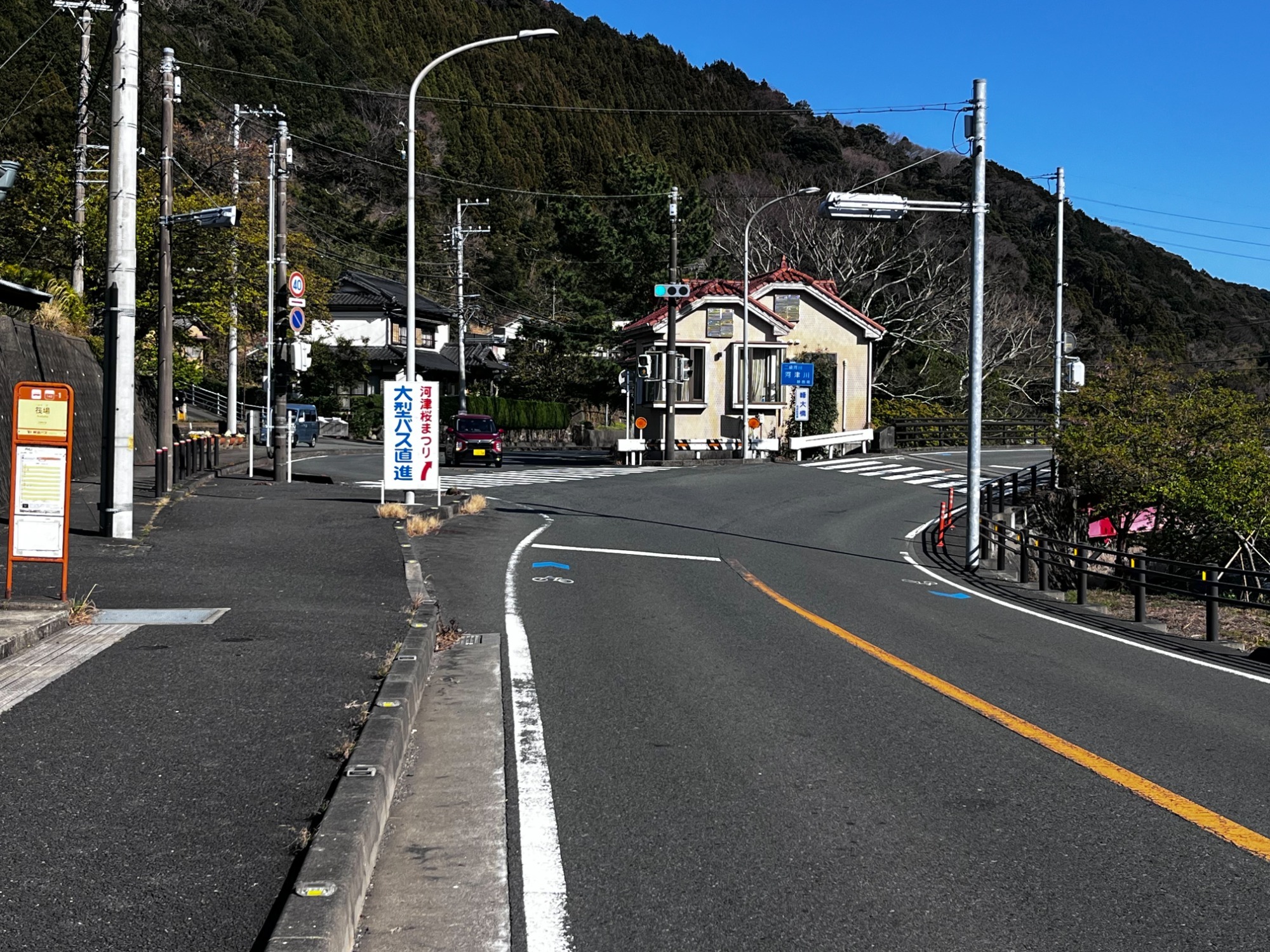 ④サンシニア河津を過ぎ、そのまま静かな坂道を上りきります