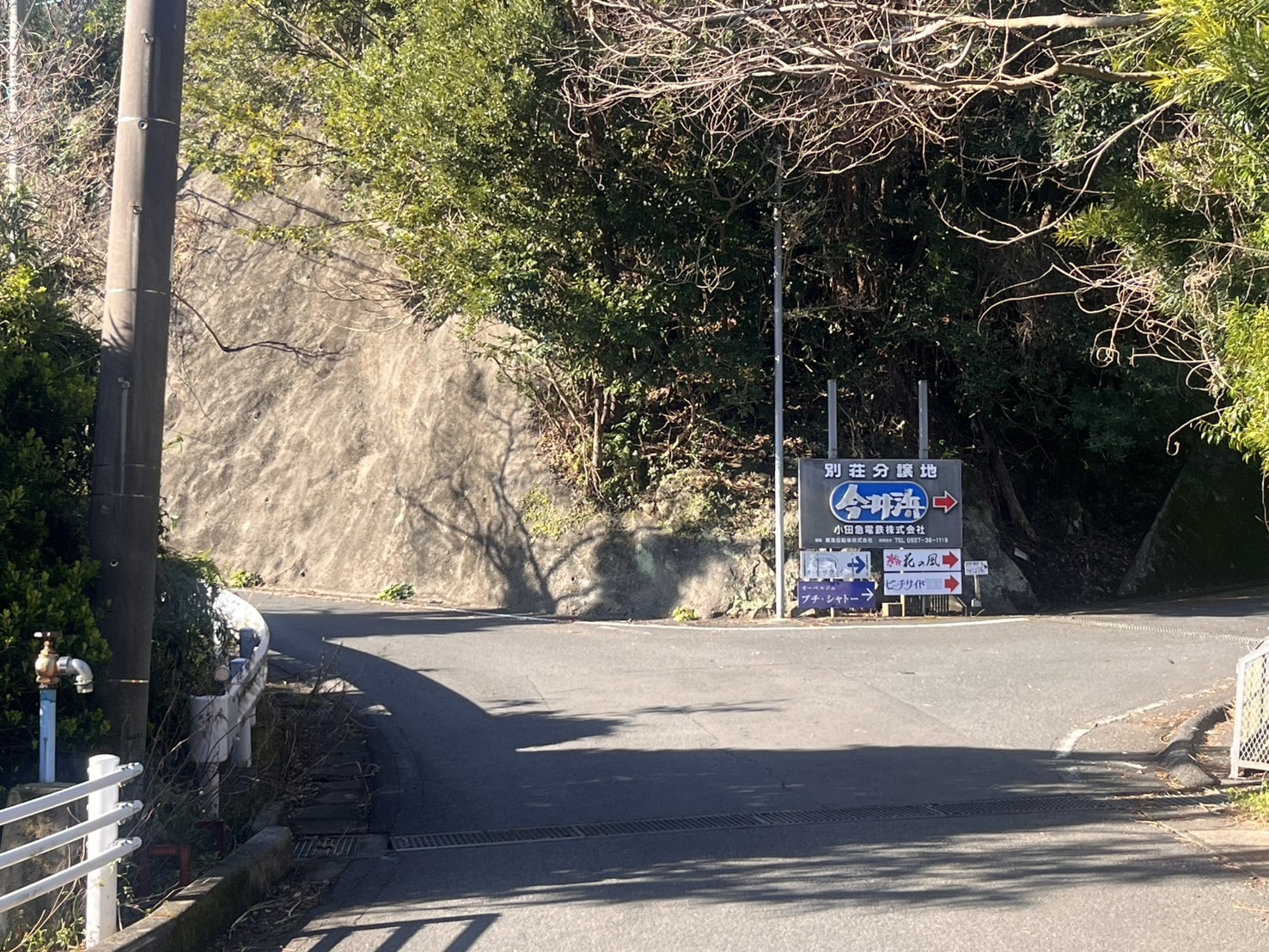 今井浜」と書かれた看板のあるY字路がございますので左方向へお進みください